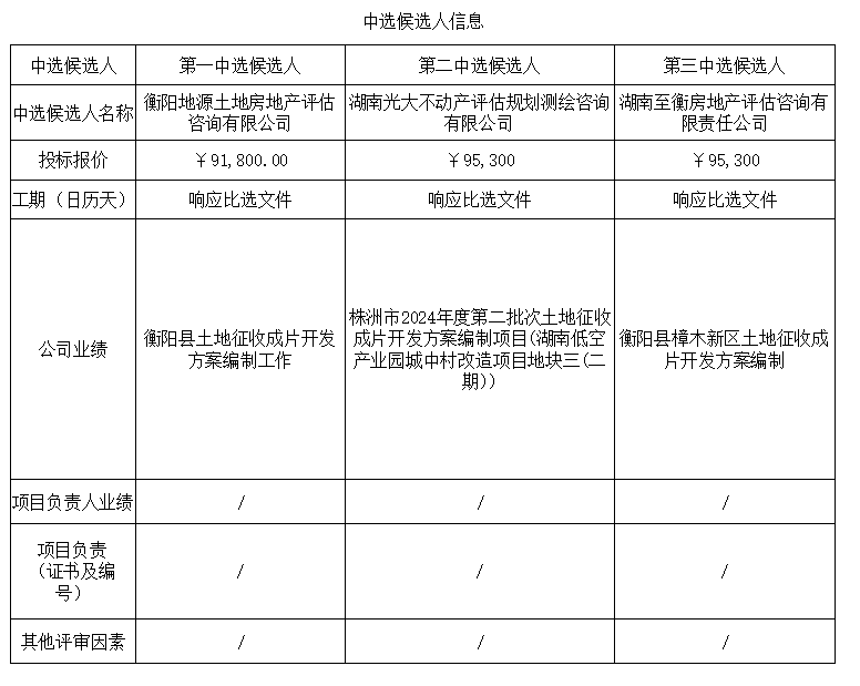 衡陽市植物園片區(qū)三宗土地征收成片開發(fā)方案編制項(xiàng)目咨詢服務(wù)比選中選候選人公示