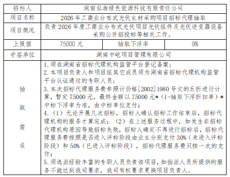 2026年工商業(yè)分布式光伏主材采購項目招標(biāo)代理抽取結(jié)果公示